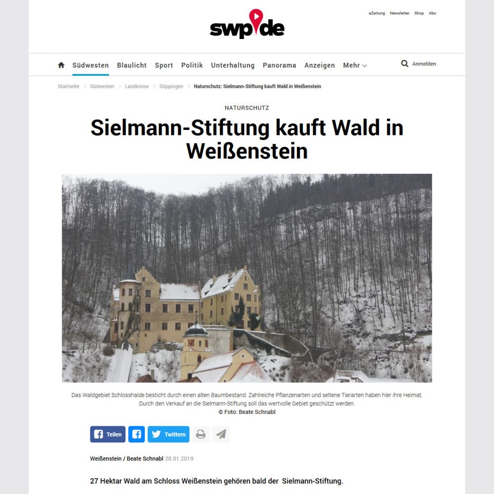 SWP: Sielmann-Stiftung kauft Wald in Weißenstein 18. Januar 2019 News Südwestpresse-Artikel: "Sielmann-Stiftung kauft Wald in Weißenstein" Link zur Artikelankündigung Zurück